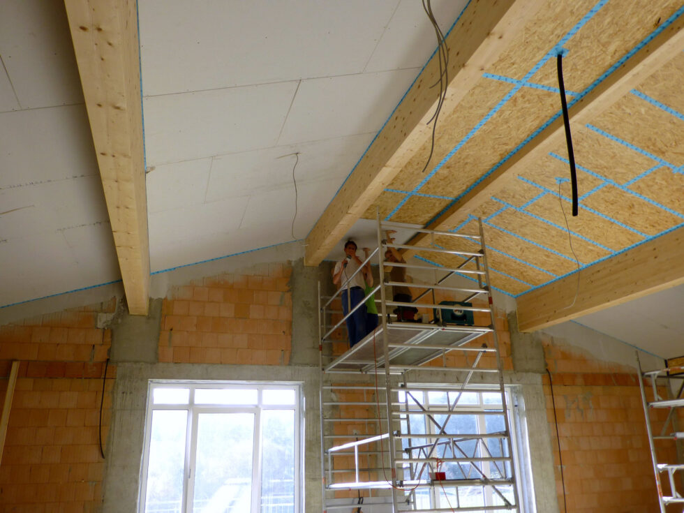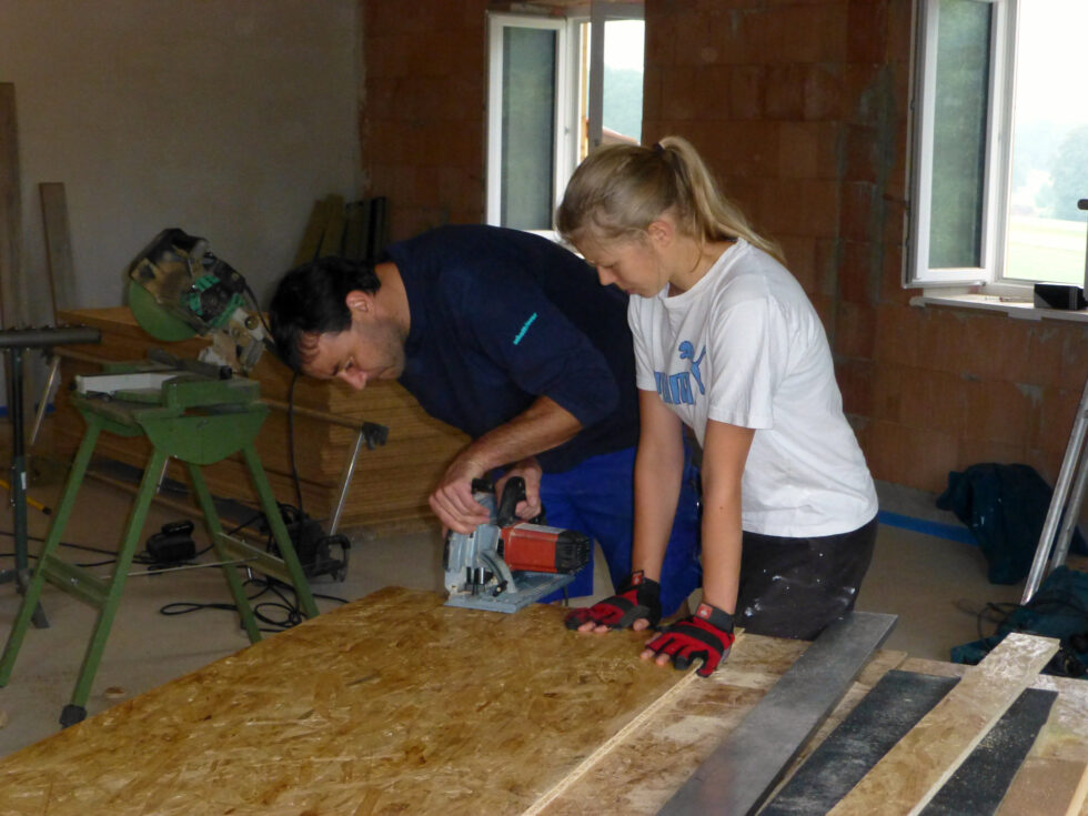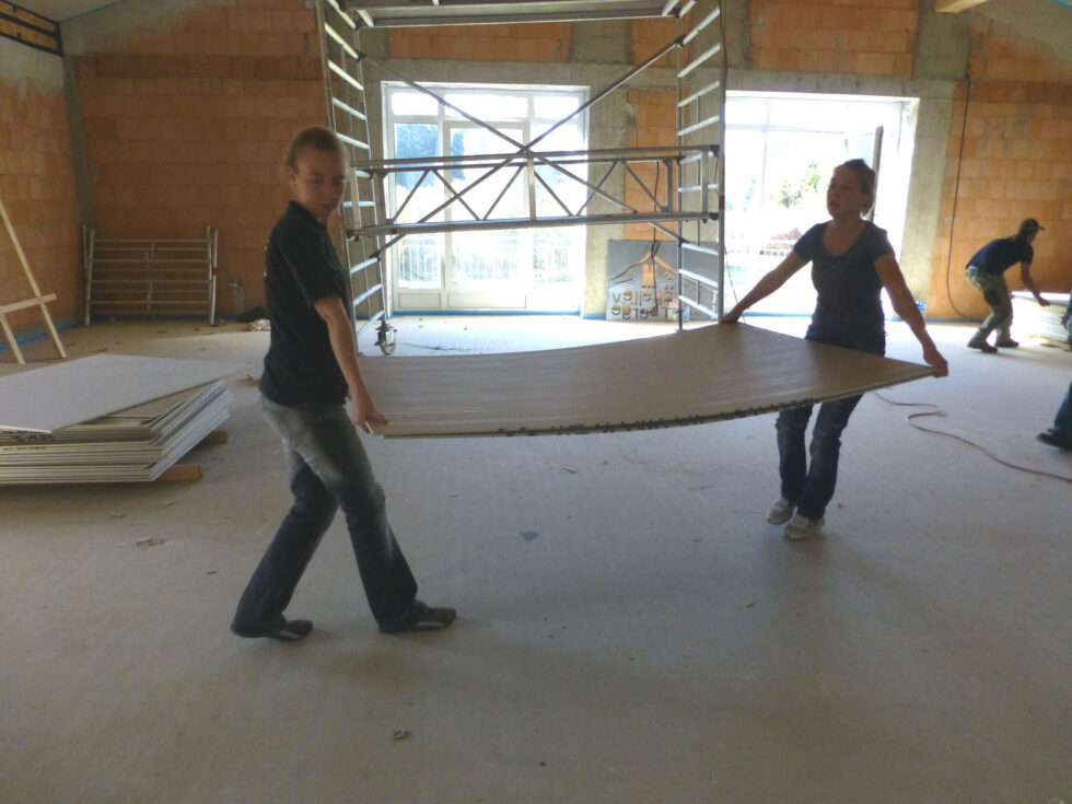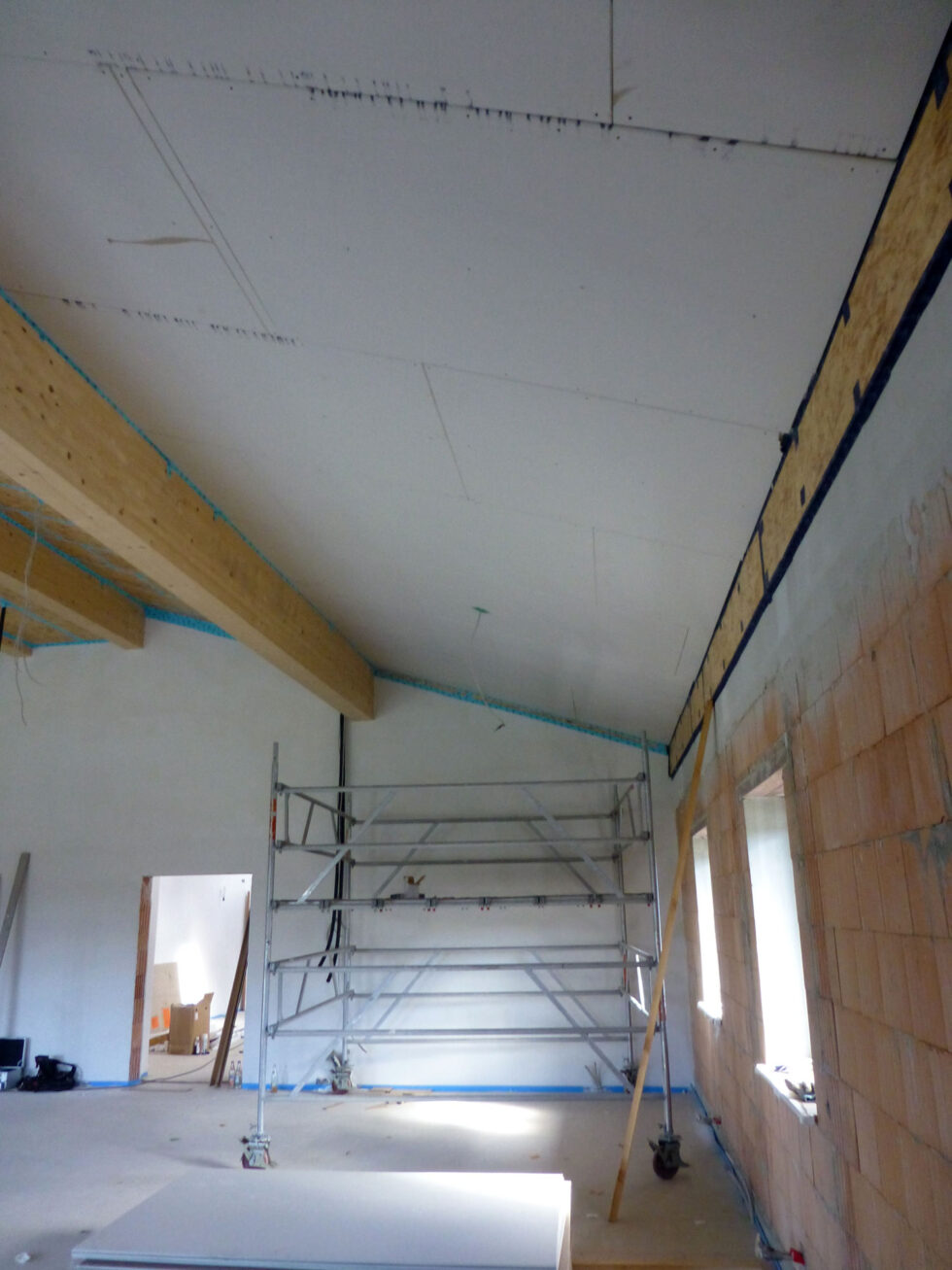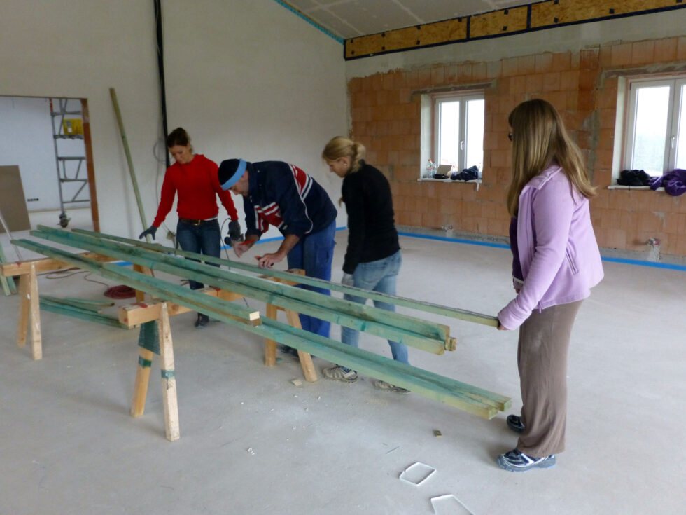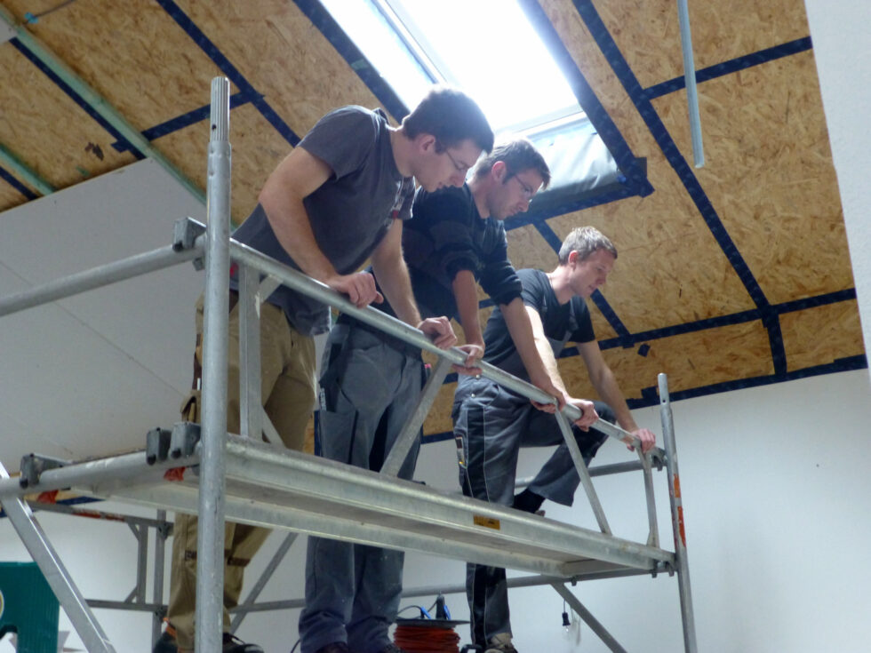 . In kompletter Eigenleistung wurde unter Fachmännischer Anleitung im ersten Stock die Elektronik installiert, gemalert, der Dachstuhl isoliert, die Holzgalerie im Registerproberaum montiert sowie der Boden verlegt. Im November 2013 begann dann der Akustik-Ausbau durch die Firma Fox-Holz aus Österreich, bei der auch täglich mehrere Mitglieder der Musikkapelle mithalfen, um die Kosten gering zu halten.